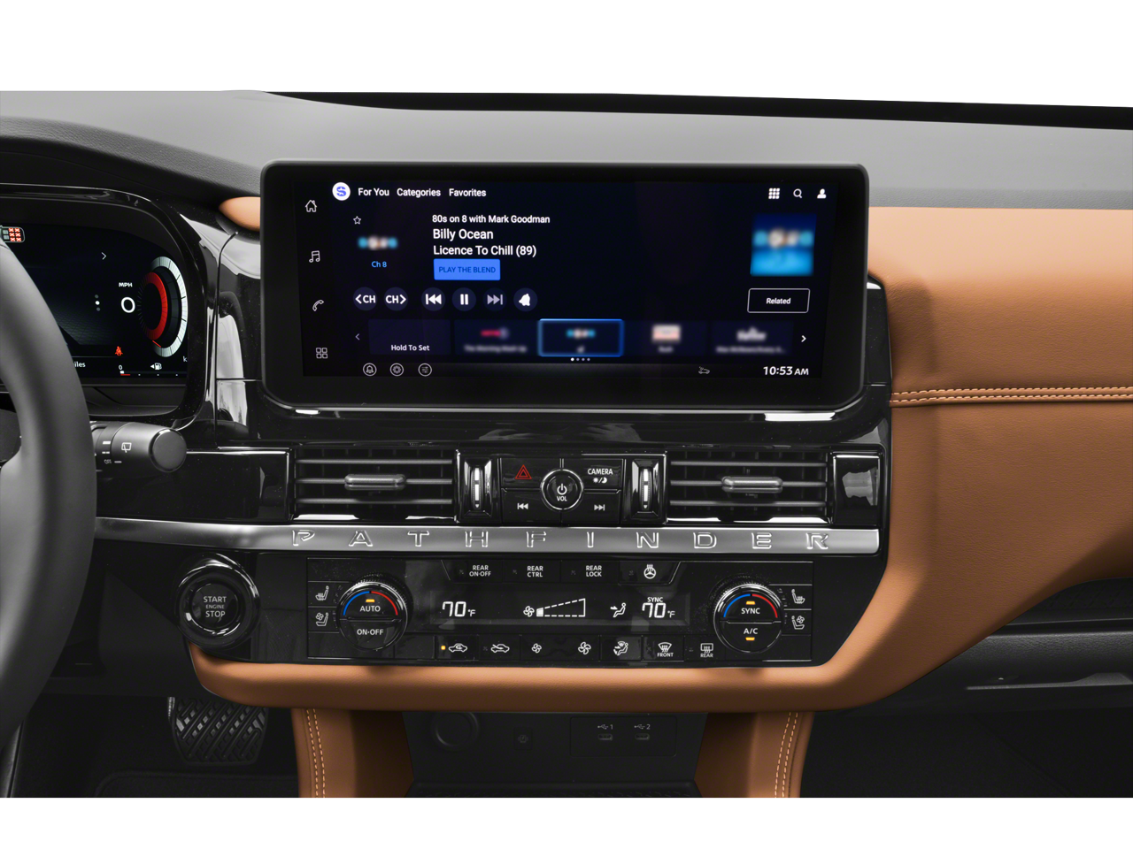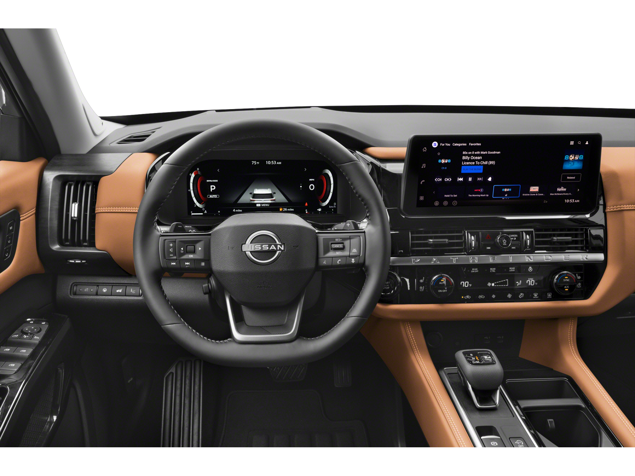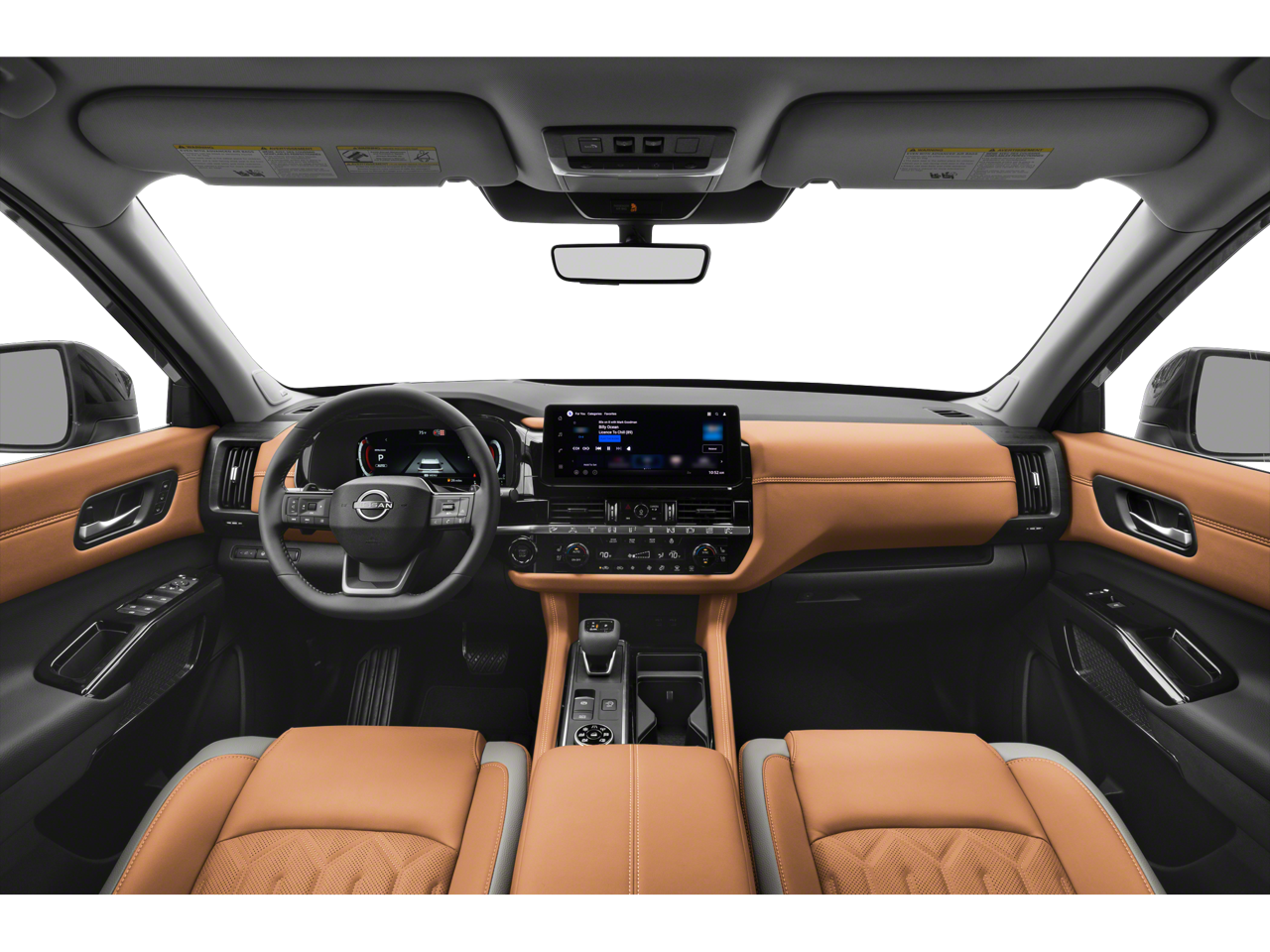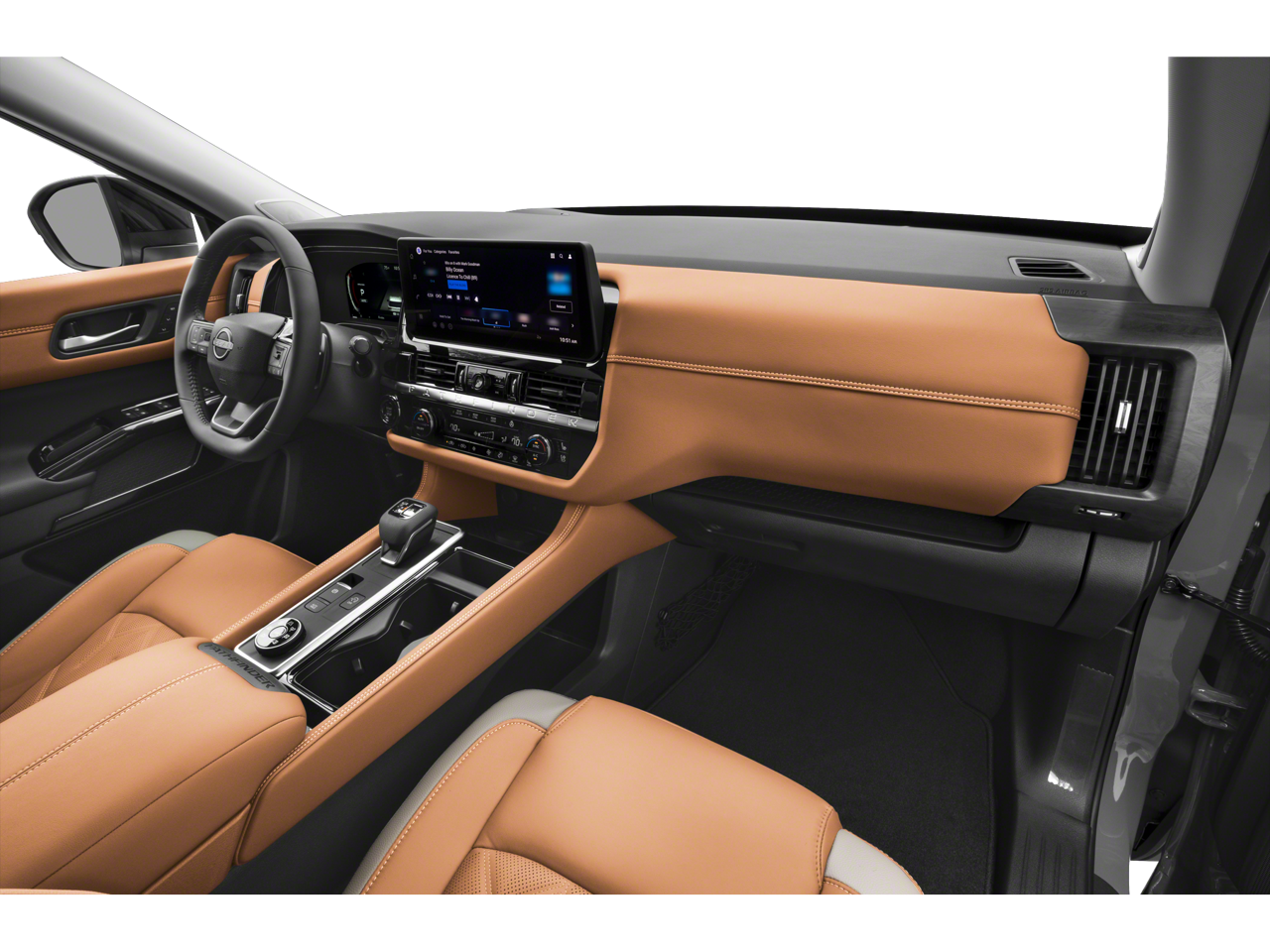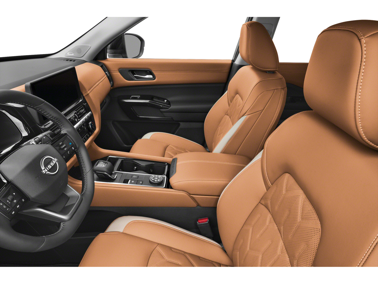 Pathfinder Platinum is nicely equipped with Cargo Package (Cargo Area Protector, Cargo Net, and First Aid), 4WD, 13 Speakers, 3rd row seats: bench, 4-Piece Black Splash Guards, 4-Wheel Disc Brakes, ABS brakes, Air Conditioning, Alloy wheels, AM/FM radio: SiriusXM w/360L, Auto High-beam Headlights, Auto tilt-away steering wheel, Auto-dimming Rear-View mirror, Automatic temperature control, Bench Seat Carpeted Floor Mats, Bodyside moldings, Bose Premium Audio System, Brake assist, Bumpers: body-color, Climate Controlled Front Bucket Seats, Cross Bars, Delay-off headlights, Driver door bin, Driver vanity mirror, Dual front impact airbags, Dual front side impact airbags, Electronic Stability Control, Emergency communication system: NissanConnect Services, Four wheel independent suspension, Front anti-roll bar, Front Bucket Seats, Front Center Armrest, Front dual zone A/C, Front reading lights, Fully automatic headlights, Garage door transmitter: HomeLink, Heads-Up Display, Heated door mirrors, Heated front seats, Heated rear seats, Heated steering wheel, Illuminated entry, Knee airbag, Low tire pressure warning, Memory seat, NissanConnect featuring Apple CarPlay and Android Auto, Occupant sensing airbag, Outside temperature display, Overhead airbag, Overhead console, Panic alarm, Passenger door bin, Passenger vanity mirror, Power door mirrors, Power driver seat, Power Liftgate, Power moonroof, Power passenger seat, Power steering, Power windows, Premium Paint, Radio data system, Radio: AM/FM Audio System with NissanConnect, Rain sensing wipers, Rear air conditioning, Rear anti-roll bar, Rear reading lights, Rear seat center armrest, Rear side impact airbag, Rear window defroster, Rear window wiper, Reclining 3rd row seat, Remote keyless entry, Security system, Semi-Aniline Leather-Appointed Seating Surfaces, Speed control, Speed-sensing steering, Speed-Sensitive Wipers, Split folding rear seat, Spoiler, Steering wheel memory, Steering wheel mounted audio controls, Tachometer, Telescoping steering wheel, Tilt steering wheel, Traction control, Trip computer, Turn signal indicator mirrors, Variably intermittent wipers, Ventilated front seats, and Wheels: 20 Machined Alloy.