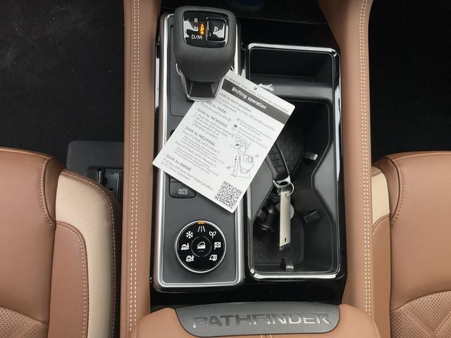 Pathfinder Platinum is nicely equipped with Cargo Package (Cargo Area Protector, Cargo Net, and First Aid), Platinum Captain Chairs Package (2nd-Row Captain Chairs and 2nd-Row Removable Centre Console), 4WD, 13 Speakers, 3rd row seats: bench, 4-Piece Black Splash Guards, 4-Wheel Disc Brakes, ABS brakes, Air Conditioning, Alloy wheels, AM/FM radio: SiriusXM w/360L, Auto High-beam Headlights, Auto tilt-away steering wheel, Auto-dimming Rear-View mirror, Automatic temperature control, Bodyside moldings, Bose Premium Audio System, Brake assist, Bumpers: body-color, Captain's Chairs Carpeted Floor Mats, Climate Controlled Front Bucket Seats, Cross Bars, Delay-off headlights, Driver door bin, Driver vanity mirror, Dual front impact airbags, Dual front side impact airbags, Electronic Stability Control, Emergency communication system: NissanConnect Services, Four wheel independent suspension, Front anti-roll bar, Front Bucket Seats, Front Center Armrest, Front dual zone A/C, Front reading lights, Fully automatic headlights, Garage door transmitter: HomeLink, Heads-Up Display, Heated door mirrors, Heated front seats, Heated rear seats, Heated steering wheel, Illuminated entry, Knee airbag, Low tire pressure warning, Memory seat, Navigation system: NissanConnect with Navigation and Services, NissanConnect featuring Apple CarPlay and Android Auto, Occupant sensing airbag, Outside temperature display, Overhead airbag, Overhead console, Panic alarm, Passenger door bin, Passenger vanity mirror, Power door mirrors, Power driver seat, Power Liftgate, Power moonroof, Power passenger seat, Power steering, Power windows, Radio data system, Radio: AM/FM Audio System with NissanConnect, Rain sensing wipers, Rear air conditioning, Rear anti-roll bar, Rear reading lights, Rear seat center armrest, Rear side impact airbag, Rear window defroster, Rear window wiper, Reclining 3rd row seat, Remote keyless entry, Security system, Semi-Aniline Leather-Appointed Seating Surfaces, Speed control, Speed-sensing steering, Speed-Sensitive Wipers, Split folding rear seat, Spoiler, Steering wheel memory, Steering wheel mounted audio controls, Tachometer, Telescoping steering wheel, Tilt steering wheel, Traction control, Trip computer, Turn signal indicator mirrors, Variably intermittent wipers, Ventilated front seats, and Wheels: 20 Machined Alloy.