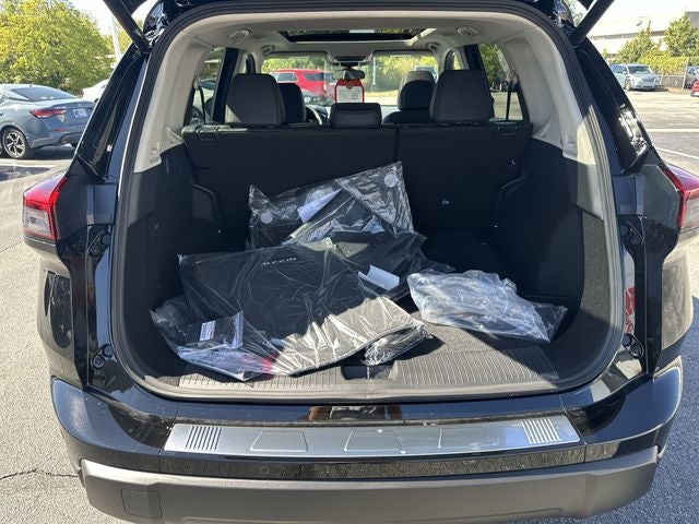 Rogue SV is nicely equipped with Cold Weather Package (Heated Front Seats and Heated Steering Wheel), SV Premium Package (Panoramic Moonroof, Prima-Tex Leatherette Seat Trim, Rear Door Sunshades, Rear Personal Lights, and Silver Painted Roof Rails), AWD, 4-Wheel Disc Brakes, 6 Speakers, ABS brakes, Air Conditioning, Alloy wheels, Apple CarPlay/Android Auto, Auto High-beam Headlights, Automatic temperature control, Brake assist, Bumpers: body-color, Chrome Rear Bumper Protector, Delay-off headlights, Driver door bin, Driver vanity mirror, Dual front impact airbags, Dual front side impact airbags, Electronic Stability Control, Emergency communication system: NissanConnect Services, First Aid Kit, Four wheel independent suspension, Front anti-roll bar, Front Bucket Seats, Front Center Armrest, Front dual zone A/C, Front reading lights, Fully automatic headlights, Heated door mirrors, Illuminated entry, Knee airbag, Low tire pressure warning, Occupant sensing airbag, Outside temperature display, Overhead airbag, Overhead console, Panic alarm, Passenger door bin, Passenger vanity mirror, Power door mirrors, Power driver seat, Power Liftgate, Power steering, Power windows, Radio data system, Radio: AM/FM NissanConnect, Rear anti-roll bar, Rear seat center armrest, Rear side impact airbag, Rear window defroster, Rear window wiper, Remote keyless entry, Speed control, Speed-sensing steering, Speed-Sensitive Wipers, Split folding rear seat, Spoiler, Steering wheel mounted audio controls, Tachometer, Telescoping steering wheel, Tilt steering wheel, Traction control, Trip computer, USB Charging Cable Set, Variably intermittent wipers, and Wheels: 18 Dark Painted Machine Finished Alloy.