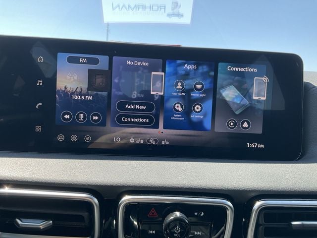 - Radio: AM/FM w/RDS/MP3 -inc: 4 speakers, 12.3" NissanConnect multimedia center display, Bluetooth® hands-free phone system, streaming audio via Bluetooth®, hands-free text messaging assistant, Siri Eyes Free, Google Assistant voice recognition, wireless Apple CarPlay and Android Auto and (2) front USB connection port (type C)