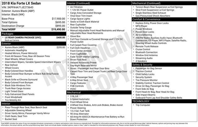 With a list price of just $9,870, this 2018 Kia Forte LX represents exceptional value in the compact sedan segment. Don't miss your opportunity to own this well-equipped and stylish vehicle. Schedule a test drive today and discover the joy of driving a Kia Forte.