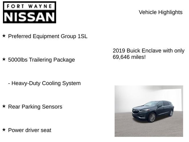 Experience the refined elegance and exceptional capability of the 2019 Buick Enclave Essence. Visit our showroom today and let us demonstrate how this premium SUV can elevate your driving experience.