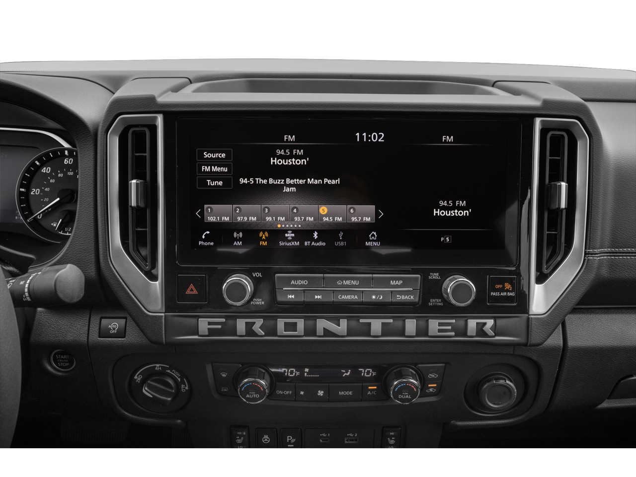 - Radio: SXM/AM/FM/AUX/USB Audio System w/Navigation -inc: Fender premium audio w/10 speakers including dual subwoofer, 12.3" color touch-screen display, wireless Apple CarPlay, wireless Android Auto, Bluetooth® hands-free phone system and streaming (audio or text message), voice recognition for audio features, Siri Eyes Free, NissanConnect services, Wi-Fi hotspot, 1 USB-A and 1 USB-C front ports, SiriusXM radio w/advanced audio features and Nissan door to door navigation